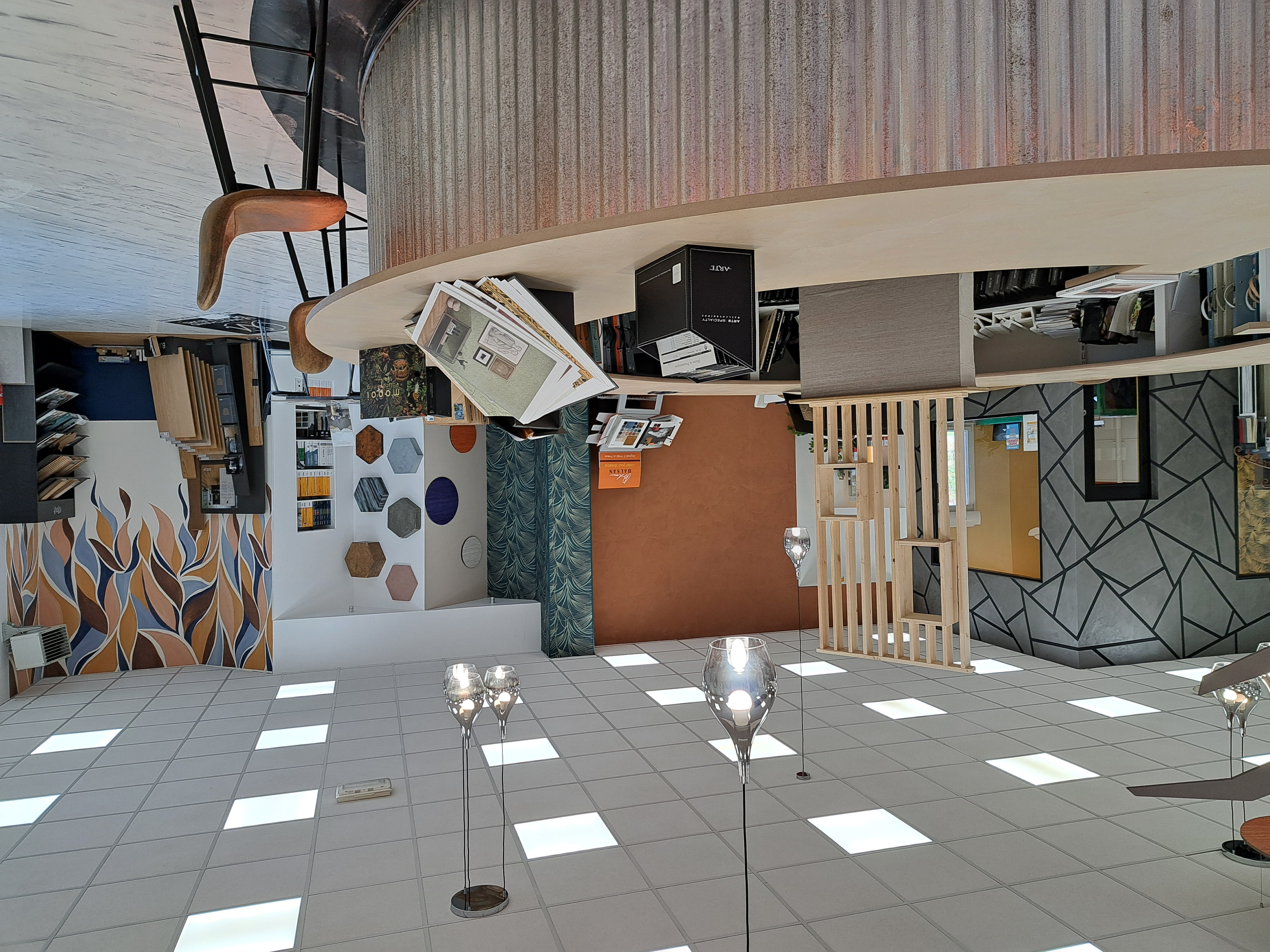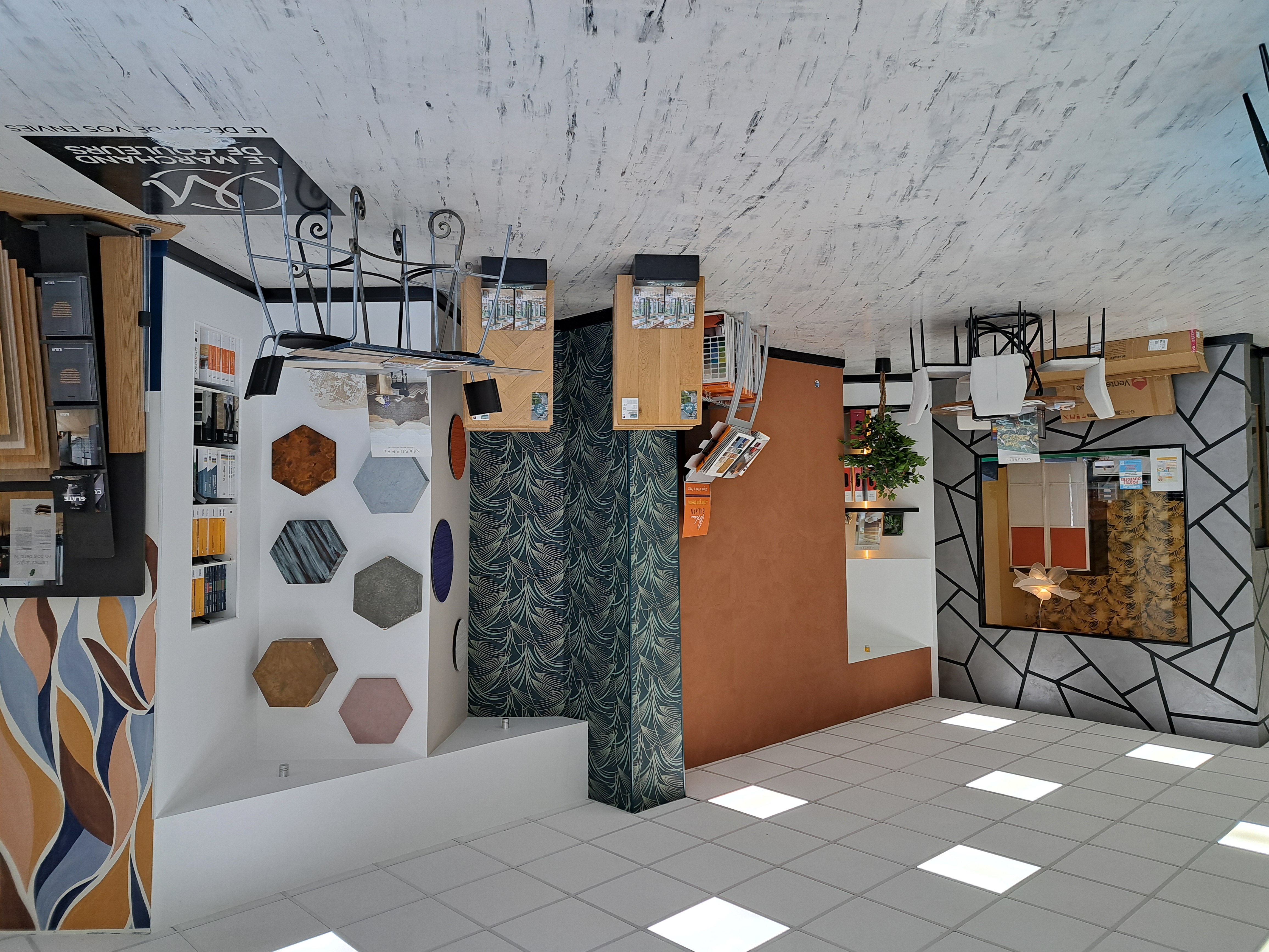 Un Showroom de 250 m² : Un espace d'exposition dédié à la décoration (peintures, revêtements sols/murs, luminaires, staff) et à la vente directe.